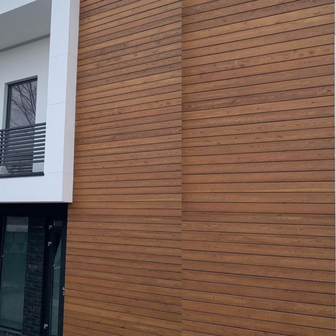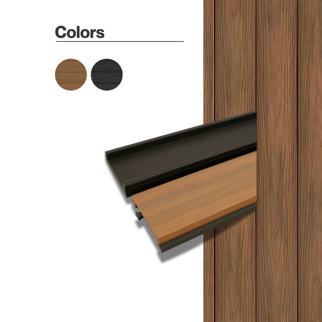 Exterior WPC panel for ceilings and walls. Resistant to moisture and sunlight, maintenance- free, and 100% resistant to mold and termites.