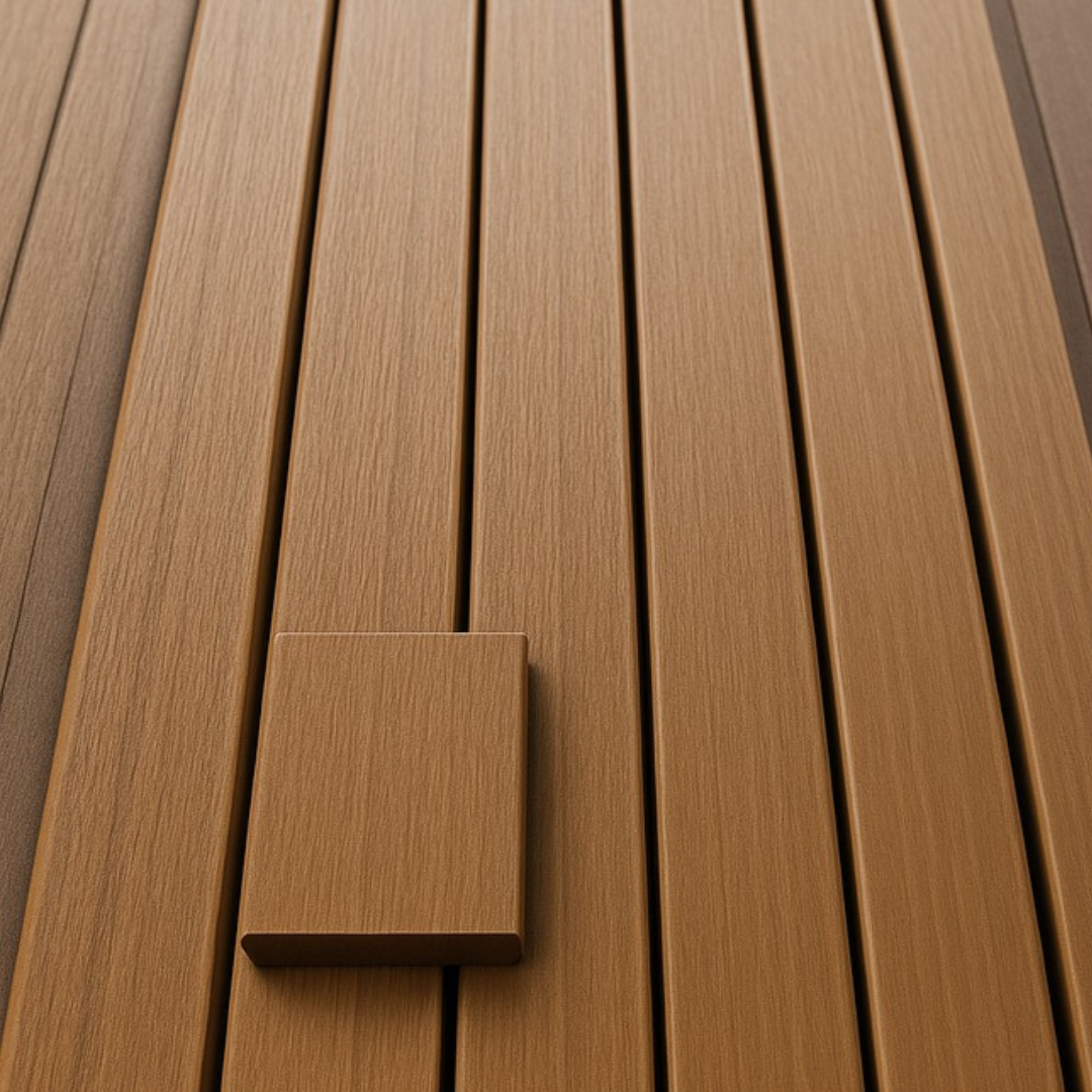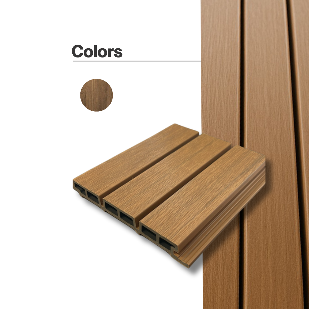 Exterior WPC panel for ceilings and walls. Resistant to moisture and sunlight, maintenance- free, and 100% resistant to mold and termites.
